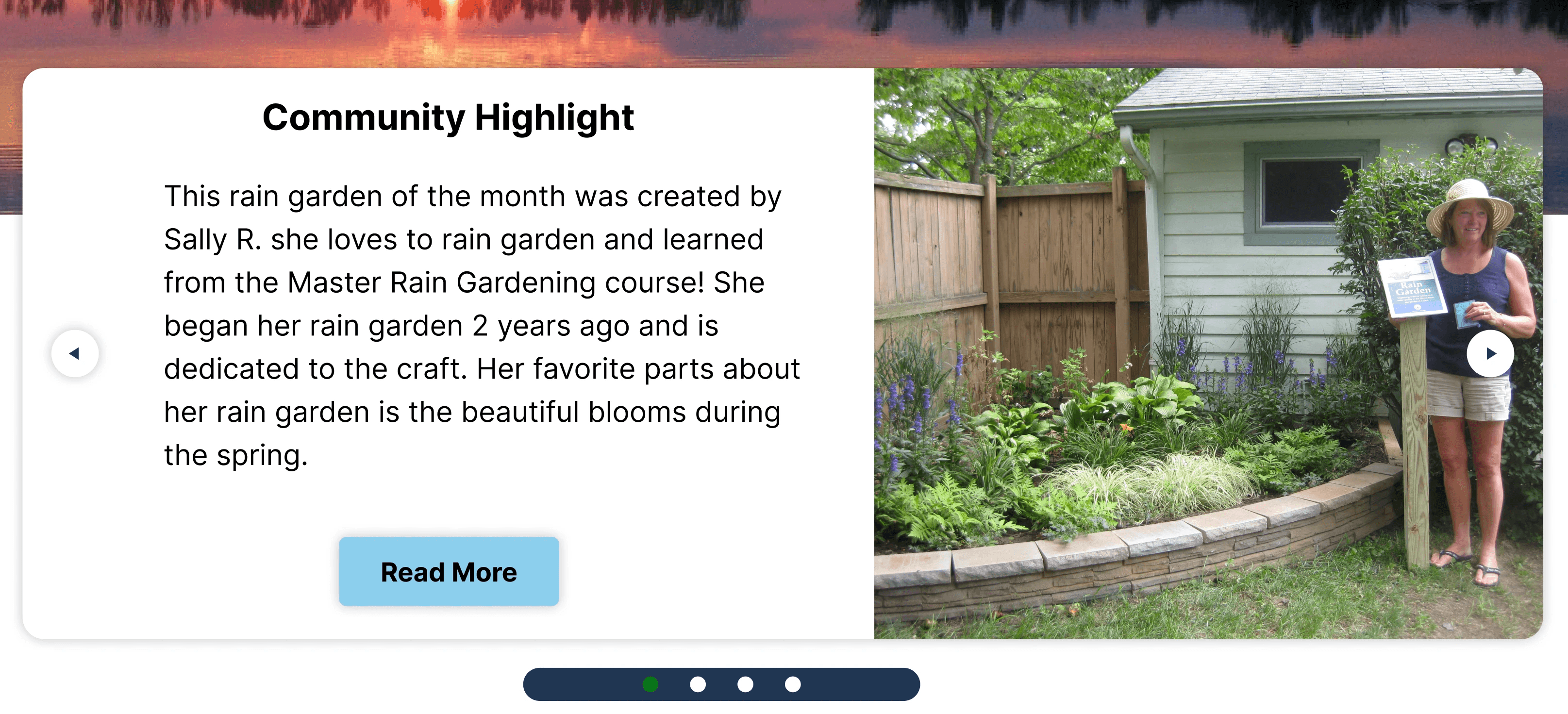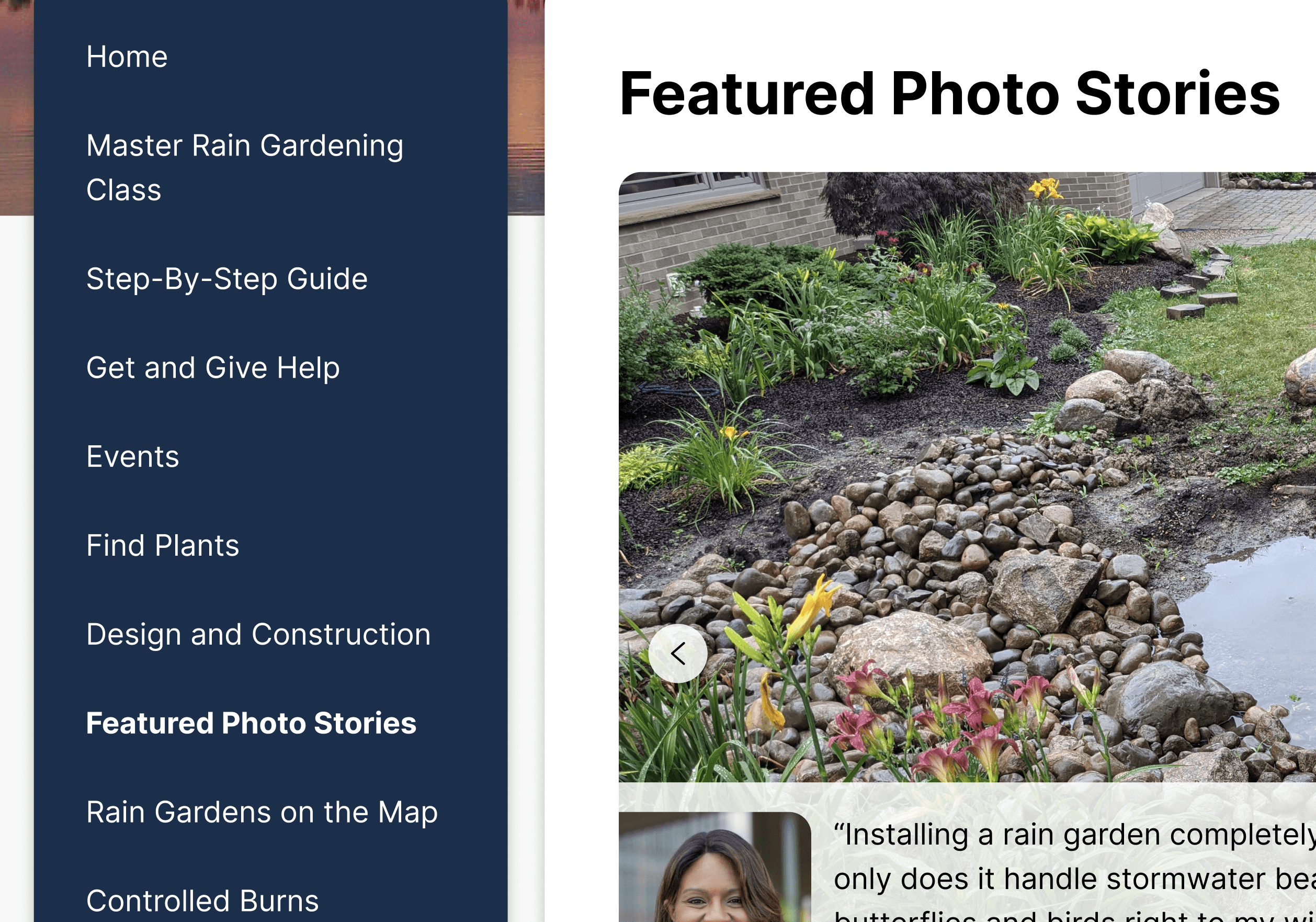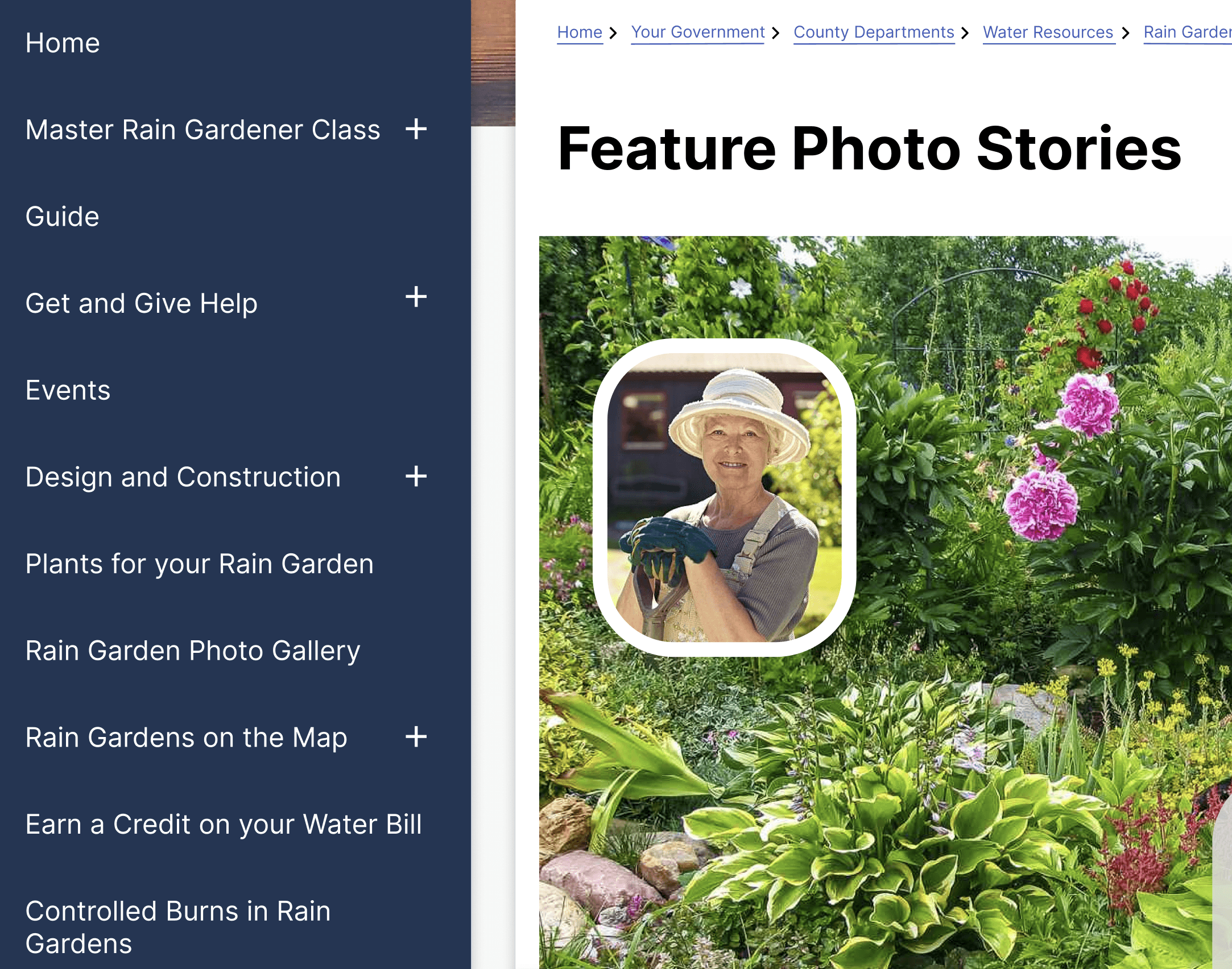 The current Washtenaw County rain garden website, the primary source of information about the program, has gaps that limit engagement with potential new rain gardeners. People using the website struggle to find relevant information presented in an engaging, aesthetically pleasing, and inspiring way, which reduces participation and hinders the program's ability to expand its reach and support sustainable practices.