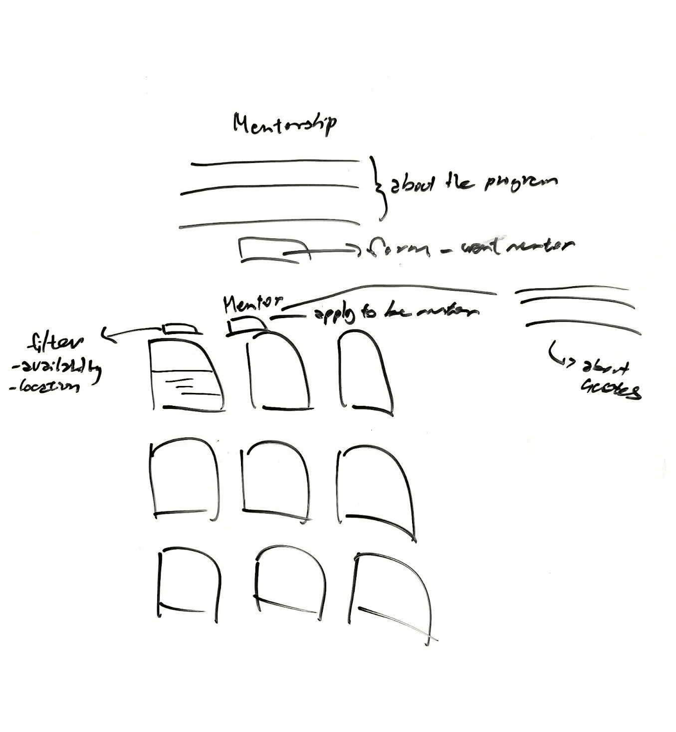 After our research phase, we identified four initial design requirements: a step-by-step beginner’s guide, a mentorship feature, an events calendar, and a photo gallery with testimonials. However, through three rounds of iterative feedback from our client, peers, and user testing, along with project constraints, we refined these ideas. Some were retained, while others were adapted or replaced.